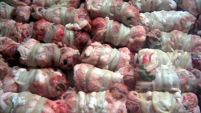 I turcinieddhi non si preparano più in casa, ma si possono acquistare in macelleria, preparati con le frattaglie ed esposti in bella vista sul bancone. Per gli amanti del fai-da-te ecco la ricetta di questo gomitolo di bontà, torto a regola d’arte e arrostito con le foglie di alloro. Profumeranno di carosello, se si userà questo ingrediente che darà agli involtini un sapore ancora più particolare.
