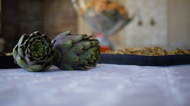 - Pulire i carciofi, privarli delle foglie esterne e metterli in acqua con il succo di un limone per non farli annerire.