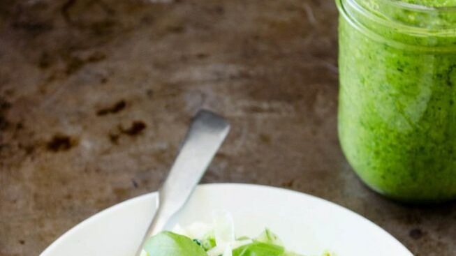 Basta frullare tutti gli ingredienti per avere un pesto di zucchine vellutato che potrà essere arricchito in base ai gusti personali con mandorle, pistacchi, ricotta, noci o foglioline di menta per un risultato ancora più fresco. Una volta pronto si può anche conservare sottovuoto. Sarà un jolly da tenere in cucina.