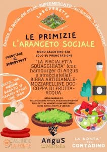 Si inaugura sabato 17 giugno 2023, a partire dalle 19.00, l’Aranceto Sociale del Salento ‘Le Primizie’. Esperienze di degustazione territoriale che vanno dai prodotti da forno (pizzi, pucce, piscialette, frise, taralli), ai latticini (con il maestro casaro che realizza le sue creazioni e le sue piccole sculture a base di latte condividendole con gli avventori), agli hamburger di angus made in Salento, alla frutta raccolta in giardino e alla birra artigianale dei maestri birrai salentini. Guest star della serata la ‘piscialetta squagghiata‘, quella puccia tipica impastata con verdure e ortaggi che fa da scrigno per un succulento hamburger di angus sul quale si adagia la calda stracciatella.
