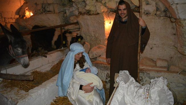 Dopo aver oltrepassato le prigioni, con i detenuti che gridano le loro sventure, il momento è propizio per far visita alla capanna della natività realizzata all’interno di un frantoio semipogeo, dove, all’interno di una vera stalla si trova un neonato che ha ricevuto il compito solenne di interpretare Gesù Bambino, avvolto in fasce nelle braccia di Maria e in mezzo a Giuseppe, a un bue e a un asino.
