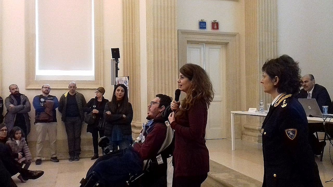 Il riconoscimento della rilevanza della componente umana nelle attività investigative è espresso dalla dedica della mostra a Gaetano Fuso, poliziotto salentino di 42 anni, Assistente Capo della Polizia di Stato, in quiescenza dal 2014 a causa della SLA, che ha ottenuto nel 2017 il riconoscimento per “atti di eroismo e impegno nella solidarietà”. Gaetano Fuso, presente in sala, porta avanti con coraggio “Io posso”, progetto nato per abbattere gli ostacoli che impediscono, a chi è affetto da disabilità, di migliorare la propria qualità della vita.