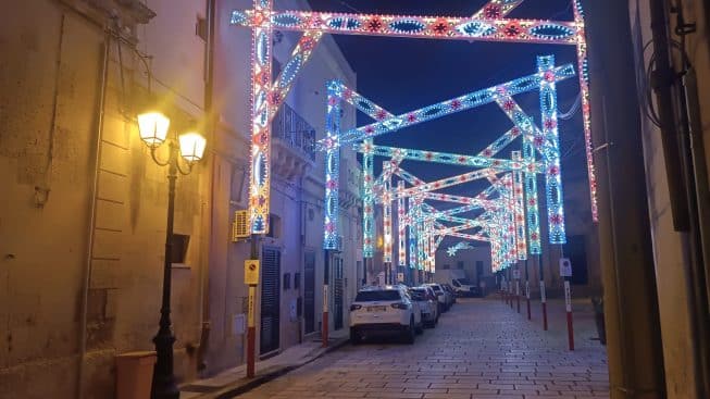 Anche a Scorrano, le imponenti impalcature hanno cambiato il volto della cittadina diventata famosa per le sue luminarie che, una volta accese, lasciano ammutoliti chi le guarda per la prima volta e chi non rinuncia, naso all’insù, a scoprire quale sarà la favola di luce di quest’anno, curiosando tra le creazioni prima disegnate su carta e poi montate su palazzi e strade. Tante le istallazioni che faranno da sfondo a selfie e scatti da condividere sui social per catturare lo spirito delle feste.