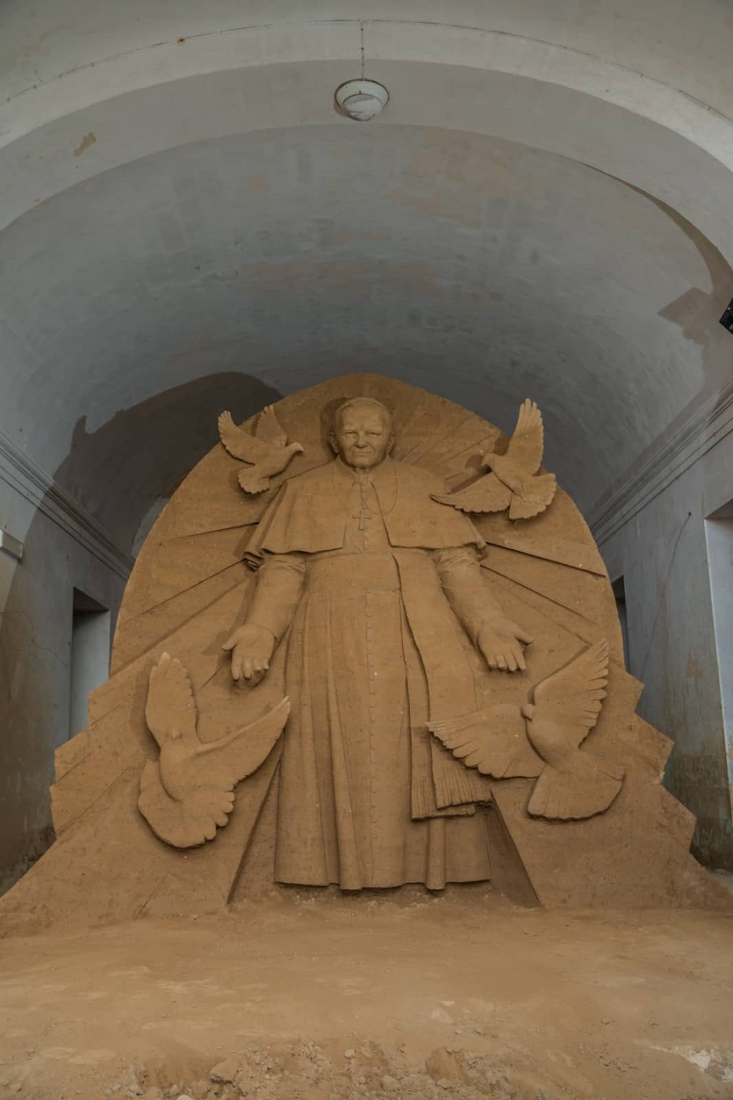 Ad orientare la visita del presepe sarà una scultura in sabbia che personificano i temi trattati: la figura rappresentata da Papa Wojtyla, il Papa che ha dato un fondamentale contributo all’abbattimento del “muro” tra Est e Ovest torna prepotentemente d’attualità.