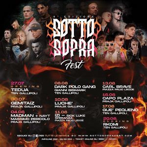Grandi nomi per la sesta edizione del Sottosopra Fest che, l’anno scorso, ha sforato quota 20mila presenze. Gemitaiz, Guè Pequeno, Luchè, Capo Plaza e Carl Brave: sono sono alcuni degli artisti che si esibiranno sul palco, in una delle tante date previste tra Gallipoli e Lecce. Più di 10 concerti con “le punte di diamante” (per i giovani) del panorama musicale italiano.