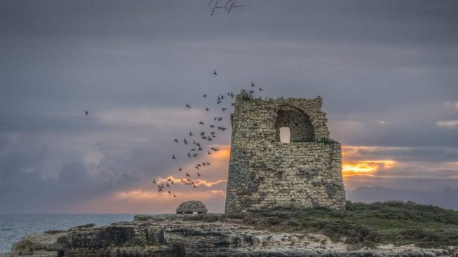 Qualcuno è riuscito mirabilmente a immortalare un punto di vista sorprendente e a regalarci tutta la sontuosa bellezza della torre di avvistamento di stampo medievale posta sull’isolotto antistante le rovine del castello di Roca.