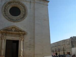 Passeggiando per il paese, conosciuto per il Dolmen, è impossibile non notare il rosone. Il barocco è tutto lì, sulla facciata solenne e armonica. L’autore che ha “disegnato” tanta perfezione è sconosciuto, il suo nome è stato cancellato dal tempo e dalla memoria, ma le innegabili somiglianze con quello della basilica di Santa Croce farebbero pensare che a scolpire la meraviglia di Minervino sia stata la stessa mano, quel Zimbalo che con Penna ha creato il raffinato ricamo in pietra di Lecce.