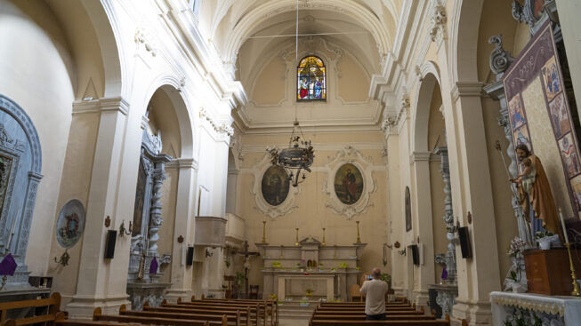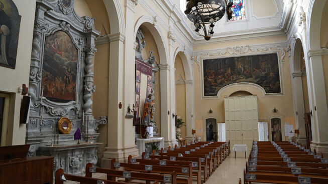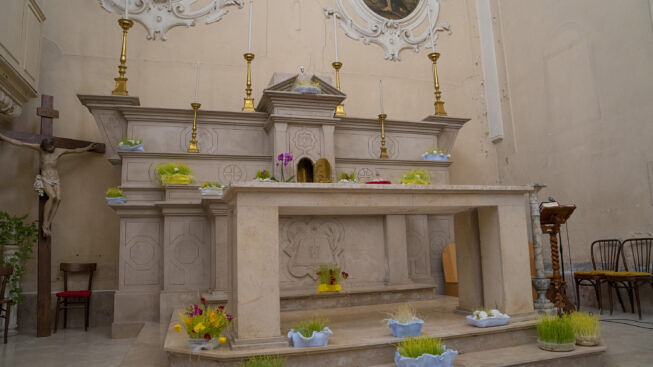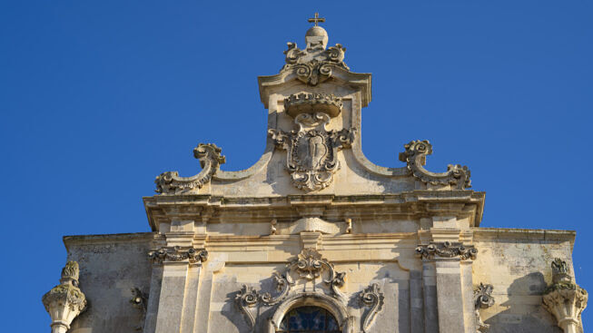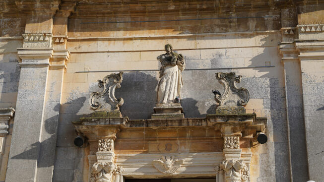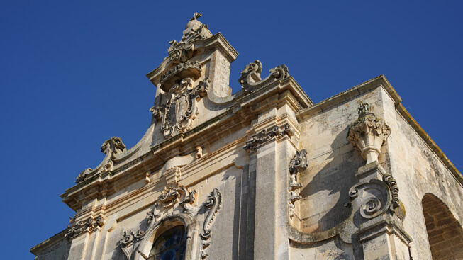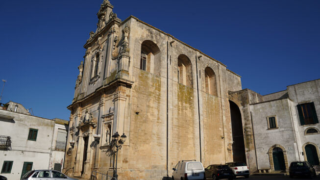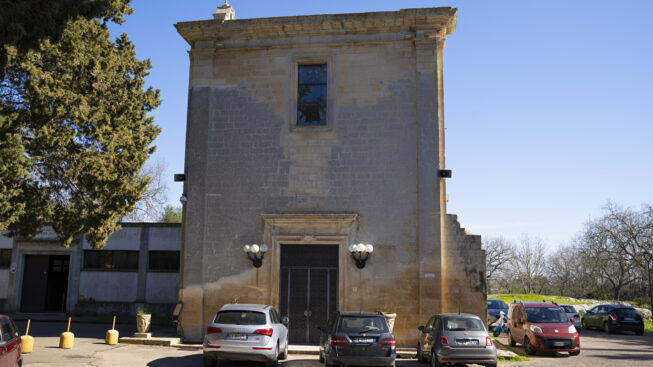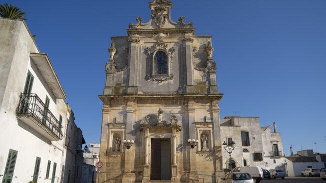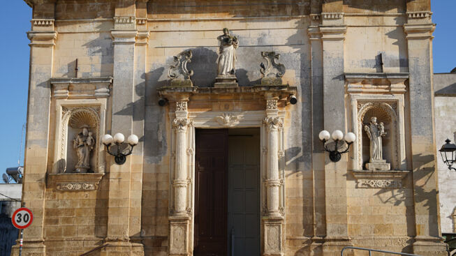 Edificata nel 1751, presenta un prospetto sobrio con due nicchie laterali contenenti le immagini di Santa Rita e San Nicola. All’interno, l’altare maggiore, realizzato in pietra leccese, è sormontato dalla statua della Madonna della Palma.