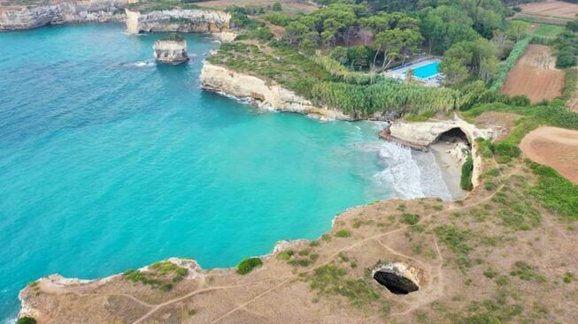 Un pezzo pregiato del litorale salentino che dopo Baia dei Turchi (leggi qui) intercetta la splendida insenatura ‘proibita’ dove sorge l’impianto dell’ex Club Med. Da qui al Mulino d’acqua il passo è breve. Sorgenti d’acqua dolce sgorgano dalla roccia coperta da una fitta vegetazione di natura quasi esotica. La parete, particolarmente friabile, rilascia in mare un composto argilloso che rende il fondo della grotta impossibile da scandagliare.