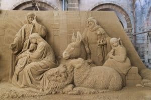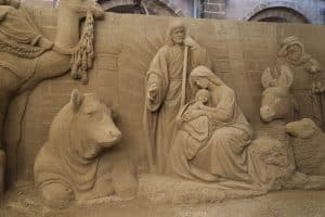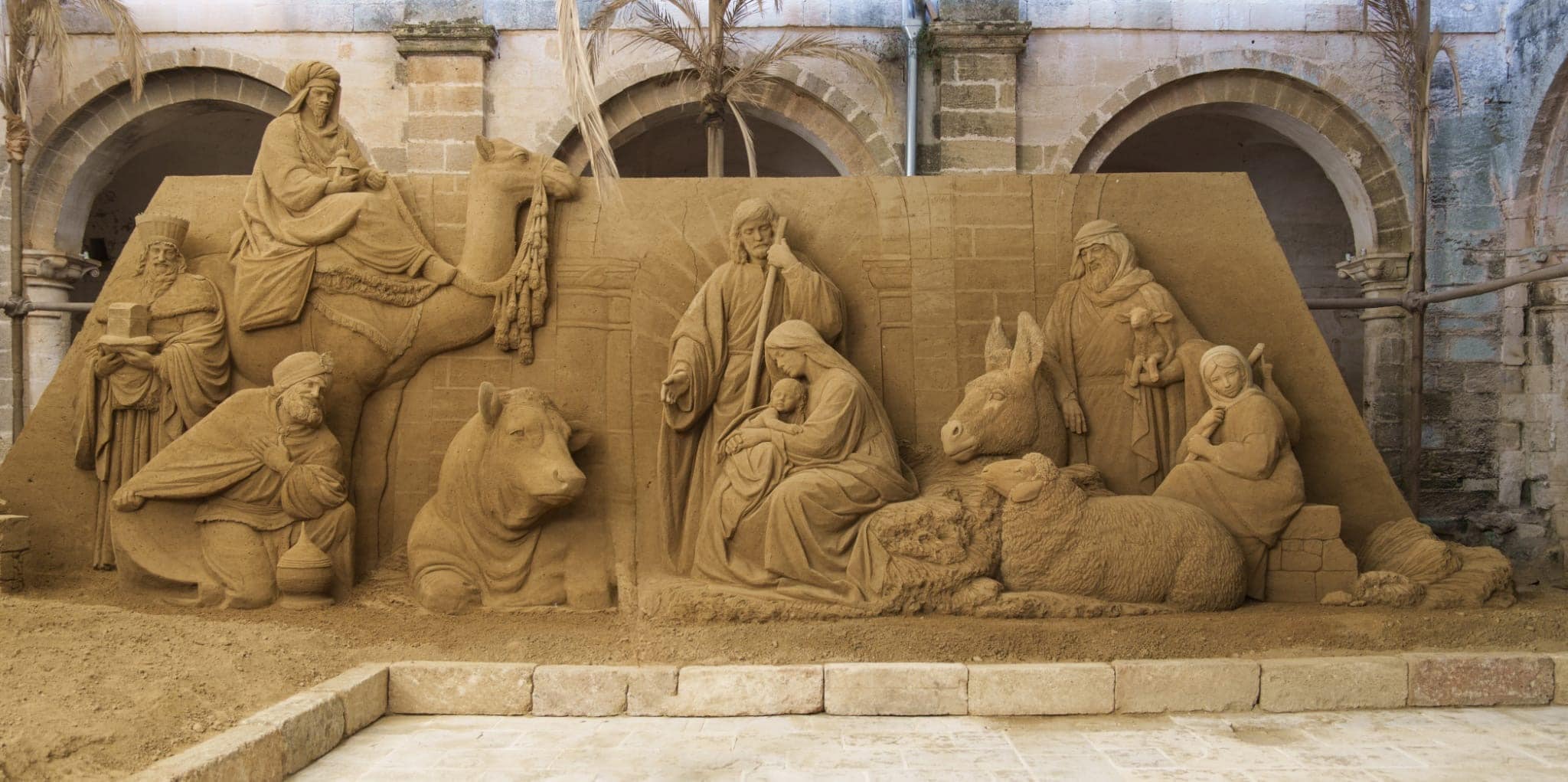 Le sculture di sabbia, vere e proprie opere d’arte, hanno lasciato senza parole grandi e piccini per settimane. La sabbia, modellata con maestria, si muta in opere d’arte temporanee, che parlano non solo della storia sacra, ma anche del talento e della creatività umana. Ogni dettaglio, ogni sfumatura, è un invito a perdersi in un mondo fatto di granelli. E poi, l’atmosfera che si respira a Scorrano durante le feste è davvero speciale: le luminarie che illuminano le vie, il calore dell’accoglienza dei suoi abitanti.