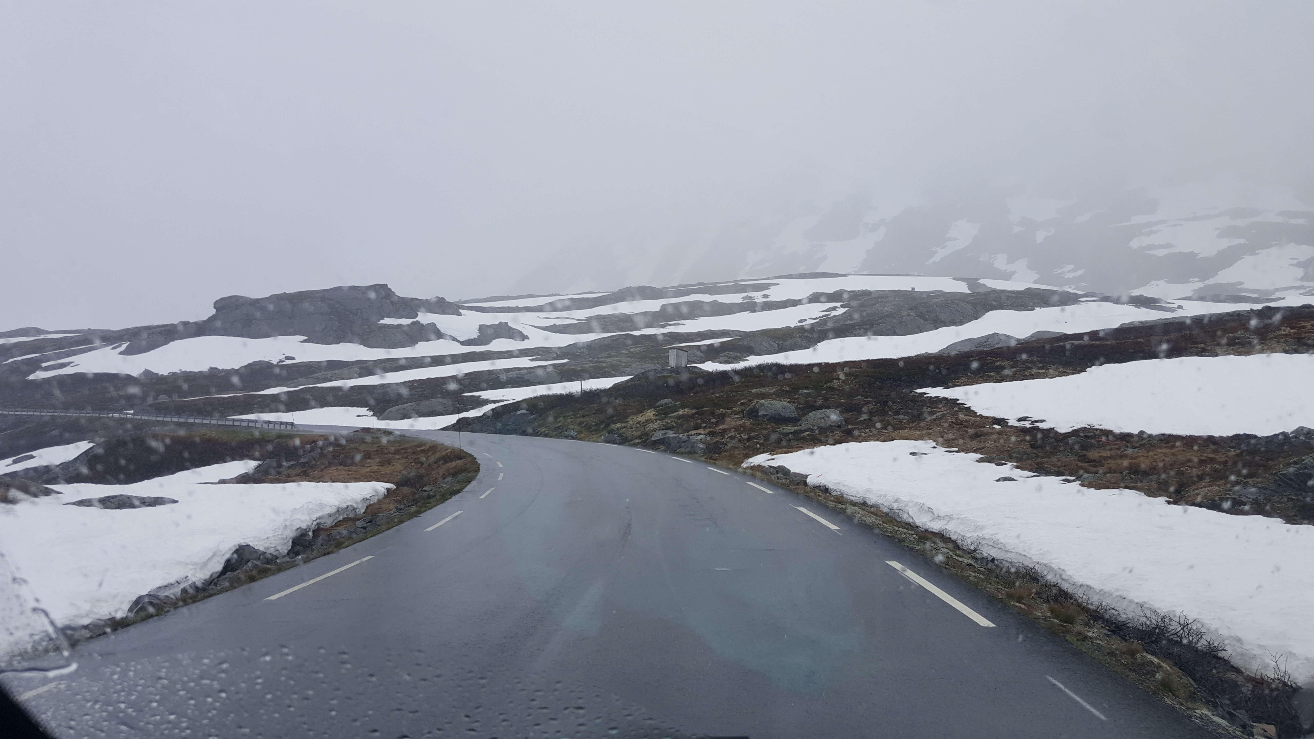 Ho lasciato Loen senza fretta, perché oggi avevo poco da guidare, quantomeno pochi chilometri, perché ciò che mi aspettava era una distesa di ghiacciai, di laghi congelati, di torrenti, di neve e pioggia, quindi rallentamenti e tanti video.