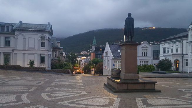Avevo trascorso due giorni a Bergen senza vedere molto, causa la pioggia, ma quando stamane mi sono svegliato ho trovato un cielo accettabilmente azzurro, pertanto mi è sembrato un buon compromesso passare mezza giornata passeggiando per la città. Me la sono girata tutta, per quanto ho potuto: il waterfront, la cattedrale, il quartiere antico, la parte sulla collina, di nuovo il mercato del pesce.