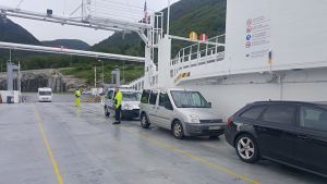 Non vi dico il freddo e soprattutto il vento che c’era in quella mezz’ora di tragitto; mezz’ora trascorsa tra il ponte, ammirando il fiordo su cui stavo per approdare, e la sala interna, per proteggermi e non assiderare.
