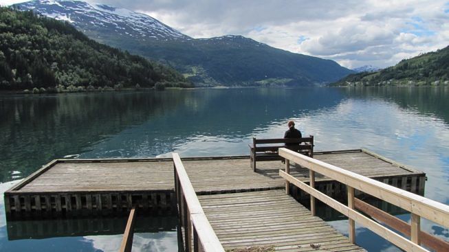 Sono salpato a Lavik, ho continuato a guidare e mi sono fermato a Loen, un bellissimo borgo nella rientranza di un fiordo, magnifico. Una cabinovia mi avrebbe potuto portare fin sulla montagna, per ammirare il panorama più suggestivo della Norvegia, per poi cenare nel ristorante posto lì sopra.