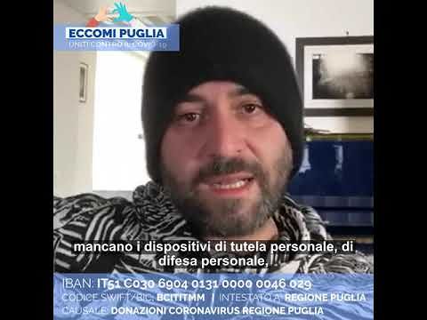 Si chiama "Eccomi Puglia. Uniti contro il covid19", la raccolta fondi per aiutare il sistema sanitario regionale che ha trovato tanti testimonial d'eccezione